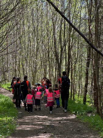 Da vi kom ned og nærmet oss barnehagen, sto foreldre og de andre avdelingene og tok i mot oss med heiarop, flagg og kake. Og vi kunne høre "we are the Champions" dundre ut av høyttaleren.